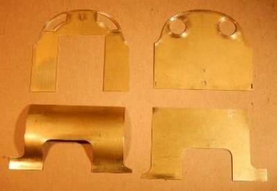 DLOS - Gosh, Nick, a Red Letter Day - the day you ask me how to do something! For the rear cabsheet with the circular spectacles, I turned two suitable brass rings from an off-cut of 1/2” diameter brass bar, cleaned them up on the back with a smooth file and then soldered them in place on the cabsheet using my RSU. With a coping saw, I 'roughly' sawed out the material inside the rings to form the windows and then I carefully cleaned up to the rings with a half-round file. For the front cab sheet with the sort-of-crescent-like spectacles, I followed the same sort of idea. I marked out and 'roughly' sawed out one outline spectacle in 0.45mm brass sheet and I then soldered it back onto the sheet. Next, I sawed out the two blanks, following the rough outline of the first embryo spectacle, and then very carefully cleaned them up to my marking out with fine files. Reheating with a small blow torch allowed me to separate the two blanks, which needed a bit of cleaning up with a fine file on their inner edges.
