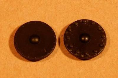 Oval plastic dome (left) and replacement circular white metal casing (right)