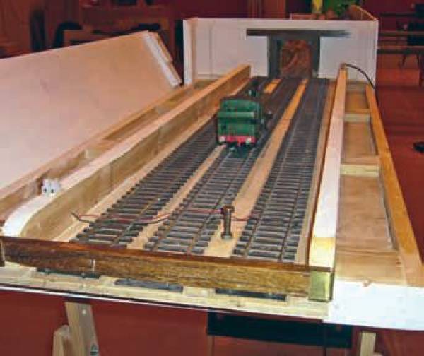My criteria for a fiddle yard were that it should take up the minimum space required and be able to store the longest train that would operate on the layout. It should be easy to turn trains, without damage, so that they can depart in the right direction. It should and have simple and reliable electrical connections to the rest of the layout. In an ideal world an enormous turntable with a many tracks would probably have fitted the bill, but the amount of space required would have been prohibitive.
