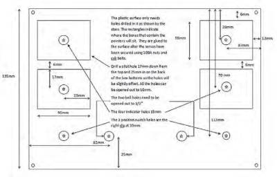 Having marked out the holes on the replacement plastic fascias, the correct size holes were drilled to allow for the fitting of the servos as shown in Figure 10. These were secured using countersunk screws and nuts. The 3-way switches