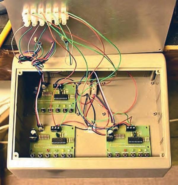The control PCBs, modified for the indicators’ three positions, came from GF Controls. Signal and point controls on my railway are on separate circuits, but the PCBs controlling them are also found in the control boxes and were