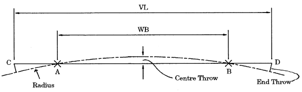 - Draw a straight line cutting the curve at points A and B such that the distance AB is equal to the rigid wheelbase or bogie centres of the longest vehicle planned for the layout. (See also Part 3, Section 5 which deals with sideplay in locomotive chassis)