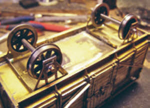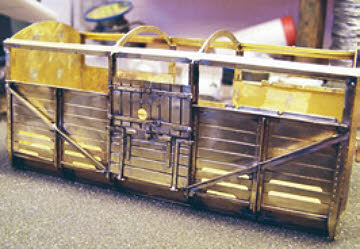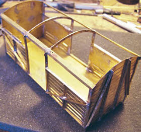 Following the sequence set out in the instructions, the basic body of the wagon soon takes shape, all joints being soldered with 60/40 solder using a 40watt Weller soldering iron. I would advise that the recommendation to sharpen the half-etched fold lines with tip of a file be followed as there is a lot of bending to do and not always a lot of material to get hold of so any aid to obtaining a crisp bend is useful.