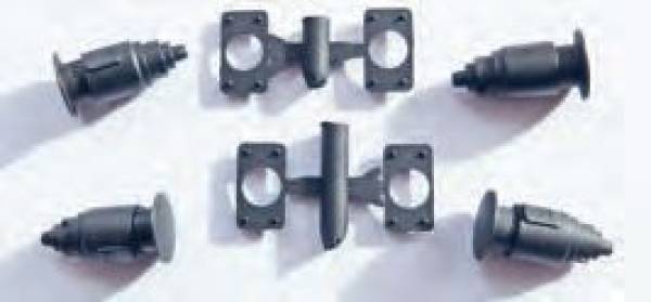 The bufferheads and rams are chemically blackened, non-ferrous metal, sensibly sprung and factory assembled into very neatly moulded plastic stocks that incorporate a footstep. Separate bases, again moulded in black plastic, are also included. The bases include rivet detail.