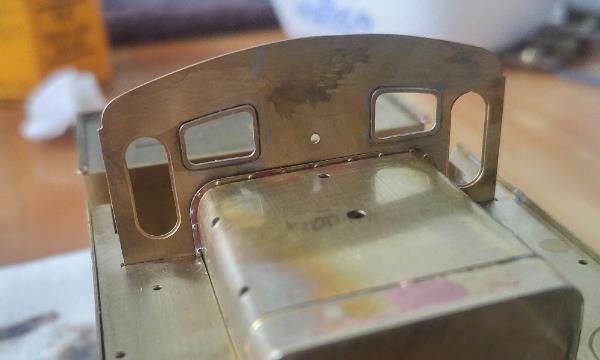 1) Most of the other soldering has been from the “inside”, where the solder isn't visible except where it flows through the joint. (cab front windows and tank steps the exception, but those I tinned to solder in place…). I think i'll be able to solder the front (i.e. inside the cab) from underneath, as there are locating tabs that I can use there. But I'm not sure I can do the same with the locating tabs for the sides and rear, as the valences and rear buffer beam are almost overlapping those tabs, and I don't want to de-solder those by accident. Might have to solder from the “outside”, so there's going to be a lot of cleanup.