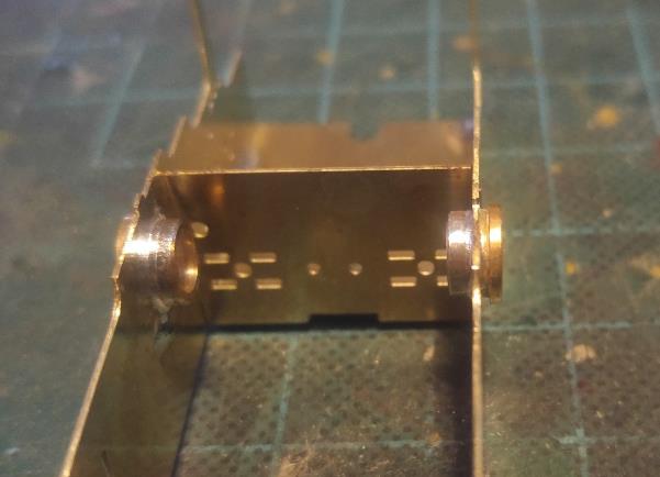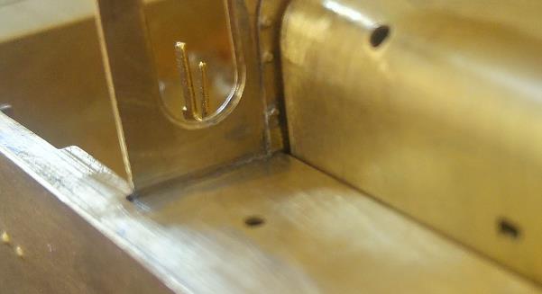 1) There was supposed to be two triangular braces to solder on the inside, but the slots in the etches were about twice the width and significantly longer of the etch, all but useless.
