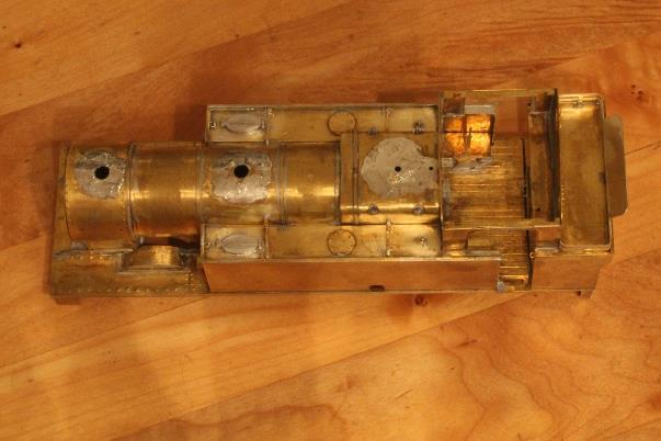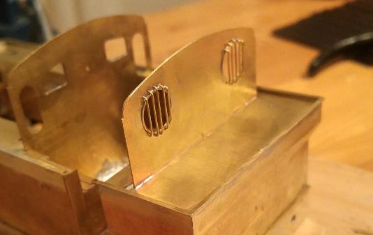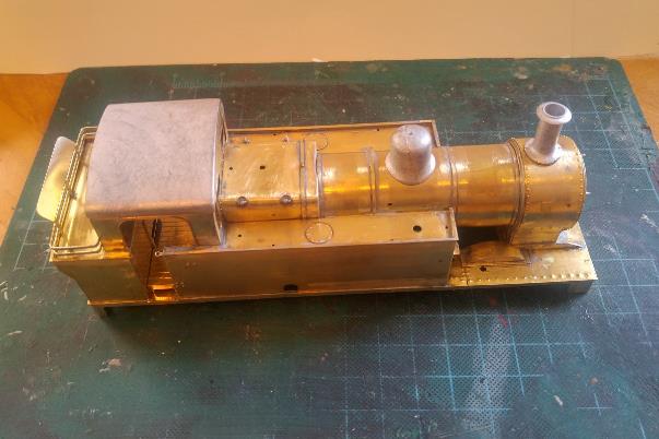 The coal bunker isn't soldered in place yet. I also still have to add the beading at the top. The coal door handle needs to be added as well, but Jim says to solder that after the cab floor is in.