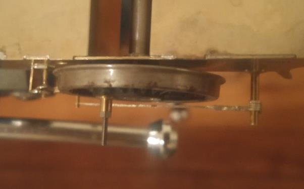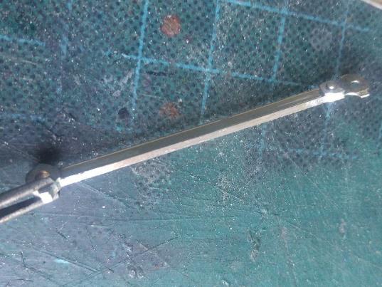 Note that the pull rod is not soldered in place yet. This is because I had a “wait, huh?” moment with regards to these pull rods. Looking down from the top of the chassis, here's what I figure will be a reasonable clearance between the wheel and the pull rod, about 1.5mm.