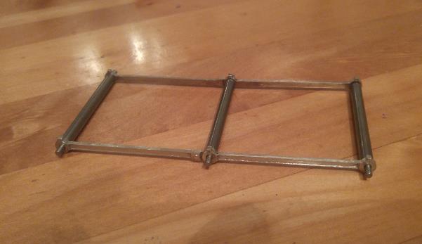 Monday was a holiday here in the US (“Presidents Day”, when I was a kid it was “Washington's Birthday”, but now we celebrate all Presidents, including the doofus who holds the office right now). With plenty of time to work uninterrupted, I decided to try to build a gearbox and test the chassis with a motor. First, I spent another hour or so fiddling with the rods until there were no binds whatsoever. No more work with the gauge pins, only took a few twists of the reamer at a time and then reassemble and test. Next, I finished soldering the chassis together. It had just been tacked together, now its much more solid. Finally, I finished the motion bracket and soldered that in place.