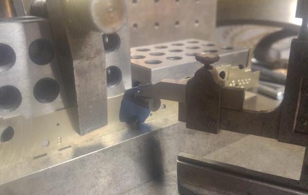 But, I decided to go with the HOG gearbox since the issues seemed easier to deal with, so I soldered it up. I used a machinist square to verify the sides were square to the motor mount surface. Before soldering the axle bearings in place, I put them in the lathe and used a 3/16” reamer to open up the hole so the axles fit.