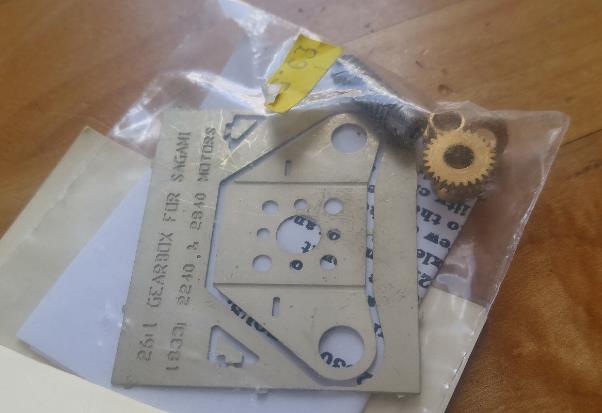 With the added springing on the center axle, using that was out. Over the past years, I acquired a few other options. First, a LONG time ago, when I bought the JM models kit for a new chassis for a Lima 4F (from Home of O Gauge, tells you how long ago it was!), I also purchased this gearbox along with a Sagami motor.