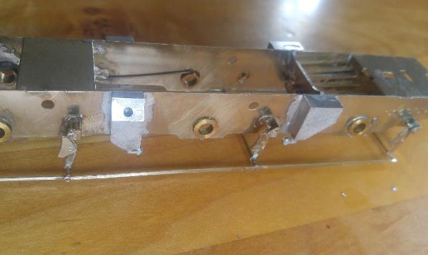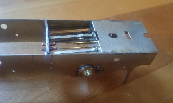 The suspension was an experiment to compare with my other Jinty that is compensated. No real difference in pulling power but it runs much quieter as the body and motor are disconnected from the track by the springs. The knock the compensated one gives on crossing vee's is absent.