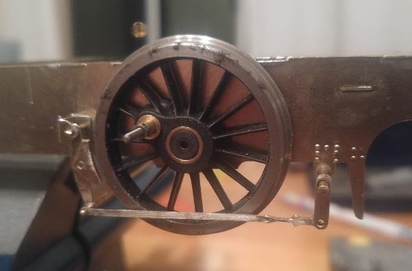 It's probably not feasible now but, when I make mine, I arrange for the hangers to spring over their upper supports or for the upper supports to spring into holes in the frames. In this way, the brake gear may be fitted after all the wheels (but before the rods and motion) and it may relatively easily be removed again, if necessary.