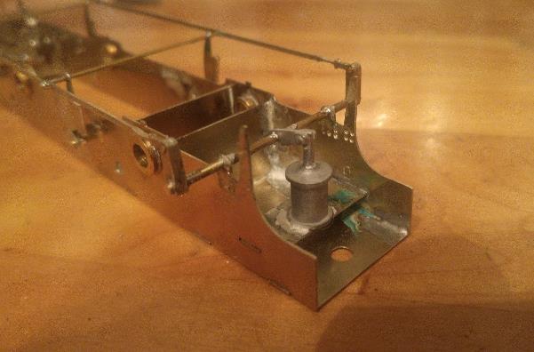 With all the brass etchings attached to the chassis, it was time to start soldering on white metal castings. After tinning the chassis in the required places, I finished the brake gear by attaching the brake cylinder and the actuating rod.