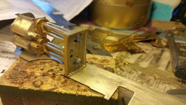 Nick Dunhill - Aug 23, 2017 at 8:48 PM ……it's been a good day. I have spent weeks cutting out and fettling castings and etchings, making linkages and pull rods and brackets and rods for the cylinder blocks. Today I stuck them all together and have a basic chassis. All the frame etchings fit perfectly, just remember to double check everything for perfect alignment before you begin to solder. I raise a glass to the designer…..