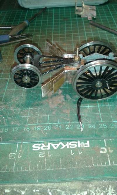 A quick explanation ! These are photos taken with my mobile phone and sent To my friend Len to show him what I was doing.I have no idea how to put pictures from my phone on to here.The chassis that is on the right of the first photo is a hachette scotsman one that I am converting to an A4 using additional A4 parts.The front has been modified but the rear is still scotsman and am using that as an aid to the modification of the A4.Both A4s will be as in BR days with cut away valances one early crest and one late one. Any one with any questions please feel free to ask ! Pat.