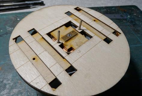 The deck was trimmed with my trusty Proxxon saw and fitted after link wires to the slip ring were fitted. Missed out photographing this in my enthusiasm to progress!