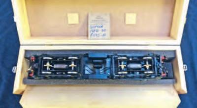 The loco has a pewter body and bogie sideframes with etched brass internal bogie frames. It is twin motored with both 8 wheel pickup and drive