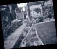 An earlier photo of the first lengths of bullhead fine scale tack laid along a strip of breeze concrete by the garden path.