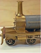 The decision to build this wee beastie was encouraged by finding a simple (although not very accurate) 4mm scale drawing in a book. Contact was made with the Great North of Scotland Railway Society, who were very helpful and provided me with an abstract of the later Cowan class C, which had many shared design features. A general arrangement drawing was later procured which showed the intimate parts in more detail, including the rather unusual Clark firebox design. The pursuit of clean combustion led this engineer to do away with the brick arch and to direct steam through a series of small jets at front and rear to create draught. The manifold for these has been modelled, as has the rather strange firebox door with bottom pivot and long vertical handles. This feature is shown in broad brush on the drawing, but with no clear indication of how the levers were actually released. The search for a Scots engine driver of some 180 years of age being fruitless, and the time machine being only capable of forward motion, the mystery remains. Also noticeable is the way the spectacle plate is completely flush with the face of the firebox back-plate; the familiar brass rim around the back-head is completely absent.