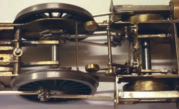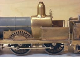 The model is largely scratch-built and is made up of brass parts produced from my own Plastikard patterns using a pantograph miller, mainly by John Taylor of Sowerby Bridge (a very friendly service and thoroughly recommended- he has all my patterns should anyone else fancy one of these engines). Some parts were cut out by Alan Gibson, a long time ago, but he no longer undertakes this work. John Taylor made all of the plate work, with the exception of the frames. These were cut out using a piercing saw, including the delicate pierced splashers and beading. John also made the nickel-silver coupling and connecting rods, to which I added the cotters and security bolts. Many minor fittings came from Laurie Griffin, who kindly compared the parts that I suggested from his catalogue with photos and drawings and either endorsed my choices or recommended alternatives. They are, invariably, superb little castings. The boiler is acrylic tube – I couldn’t find any metal tube of the correct diameter and doubted my ability to roll one well enough. This slides telescopically into available tubing forming the brass boiler-smokebox jointing ring and smokebox wrapper, which fortunately has flush rivets.