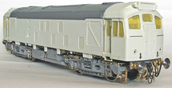 The chassis is a one piece moulding and on the Class 25, where underfloor fittings are more exposed, the draw gear and connection hoses are fitted to the bufferbeam as part of that moulding. On the class 24 where the fittings were more modestly hidden behind skirts, the buffer beam forms part of the cab moulding.