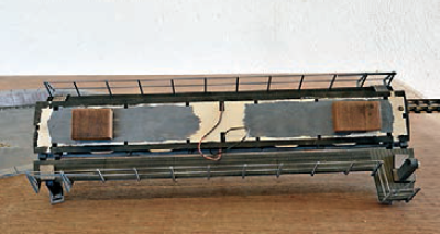 As built, the wheels of the deck appear to carry the weight of the bridge and loco. To obtain the very smoothest rotation, I lightly relieved the centre bearing using a tapered reamer to give a tiny amount of play on the centre spindle. I fitted a 0.050in shim washer on the spindle of the bridge to allow about 0.25mm tilt at each end. I replaced the rigid motor coupling supplied with a ball and socket coupling as shown in the photo. This allows the weight of the loco to be carried on the centre bearing rather than the outer wheels, which just act as stabilisers as per the prototype (i.e. when turning, only one set of wheels should be revolving, with the opposite set just clear of the race rail).