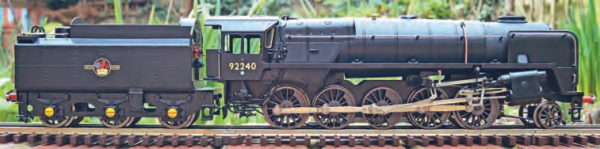 The new model comes in a strong black box with liners and instructions about lubrication and the removal of the chassis for maintenance. A brief prototype history is pasted into the box top. This all then comes inside a white outer box. The prototype 92240 was Crewe built in 1958, with a double chimney, having a working life of barely eight years on the Western Region of BR. Preserved, it went to the Bluebell Railway. The model comes with a Pines Express headboard and lamps. The model 92240 has a BR1G tender which the prototype started with, correct decals and is satin black ex-works.