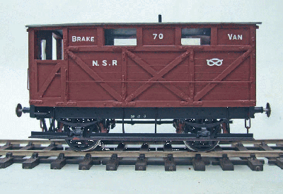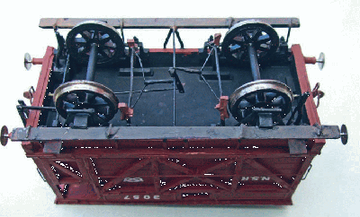 Photo 11a shows the brake linkage more clearly. On the inner, closed side of the veranda was a sand-box which dropped sand onto the rail on one side only; the guard would get a hand full of sand and drop it into a funnel that worked like an hour glass allowing sand to drop slowly onto the rail.